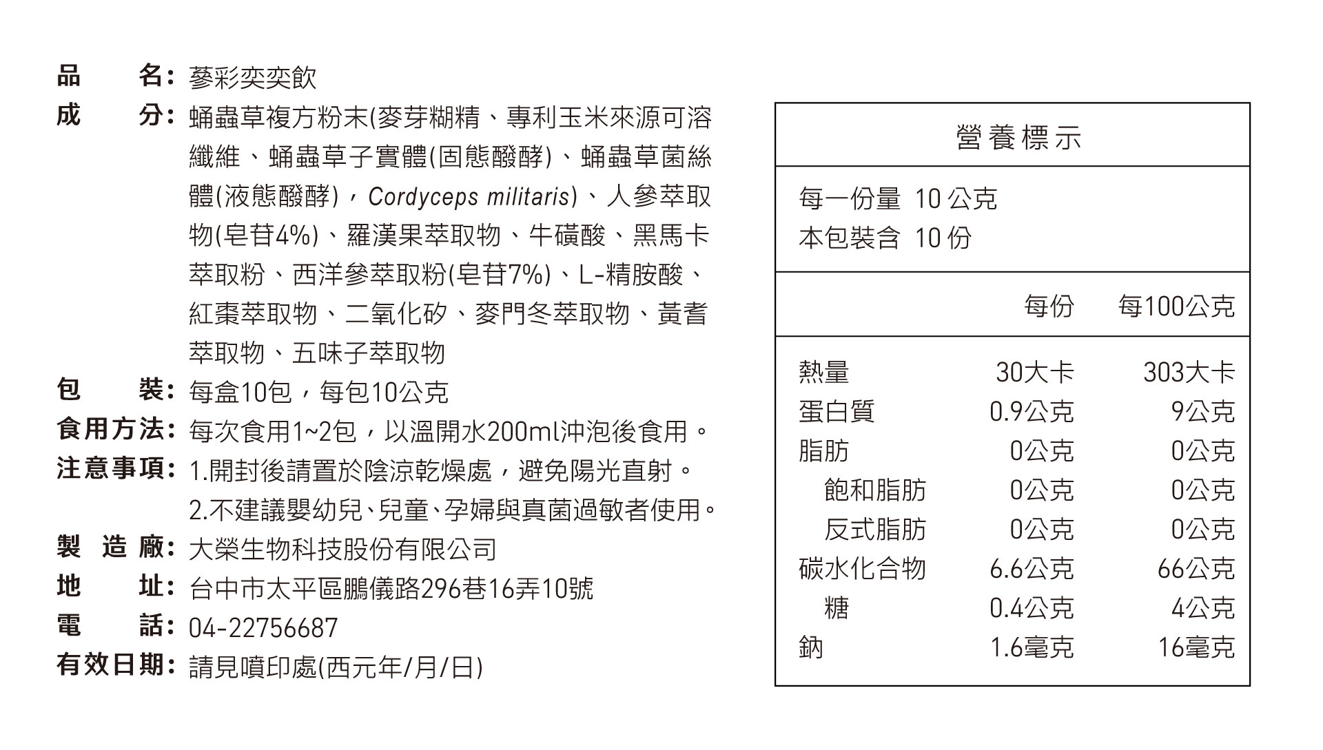 蔘彩奕奕飲 (10包/盒)(每日 1 包)