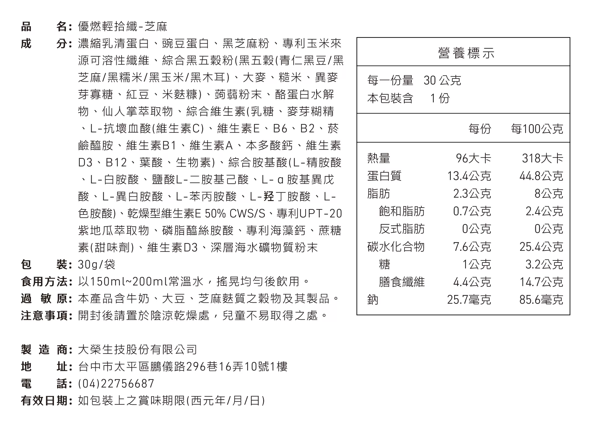 優燃輕拾纖-可可 30g/袋(每日 1-2 包,搭配均衡飲食)